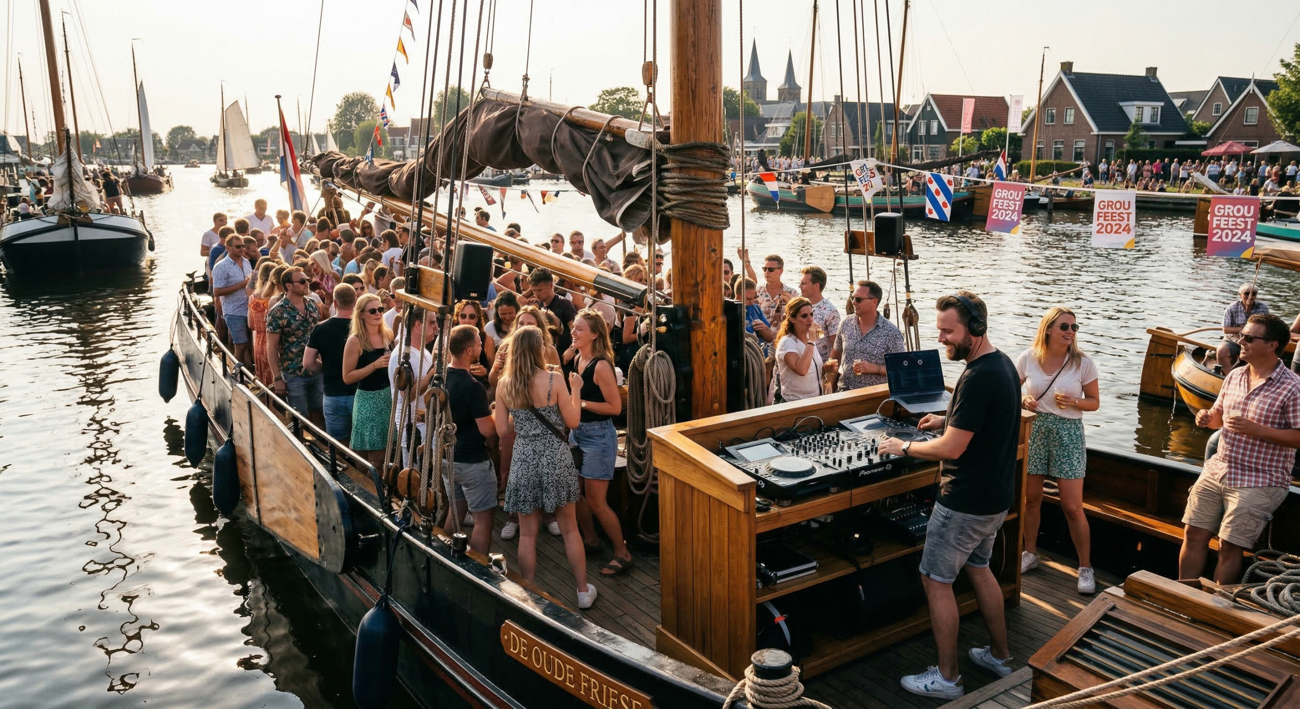 Vanaf 17:00 uur barst ook in Grou het feest los met livemuziek en DJ’s op verschillende locaties. Wil je er echt een compleet weekend van maken? Dan is er de mogelijkheid om aan boord te blijven slapen.